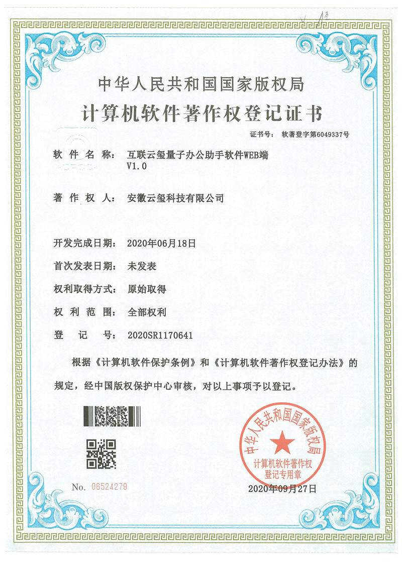 安徽云璽量子科技有限公司是合肥市量子信息產業重點企業,國家信創工委會成員企業,中國信創500強企業。主營業務包括量子安全智能印簽、量子安全智能辦公、量子安全云服務,為政企客戶提供量子安全整體解決方案。